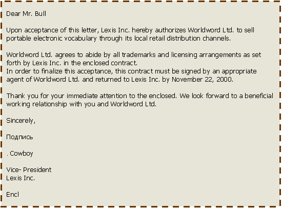 сопровождающее писмо